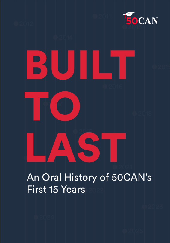 50CAN has always been the ultimate group project, built one state at a time through an unlikely collaboration of state leaders, national staff, parents, philanthropists, board members and strategic partners. When we set out to tell the story of our first 15 years, the only way to do it justice was to tell it through the voices of the people who made it possible.
